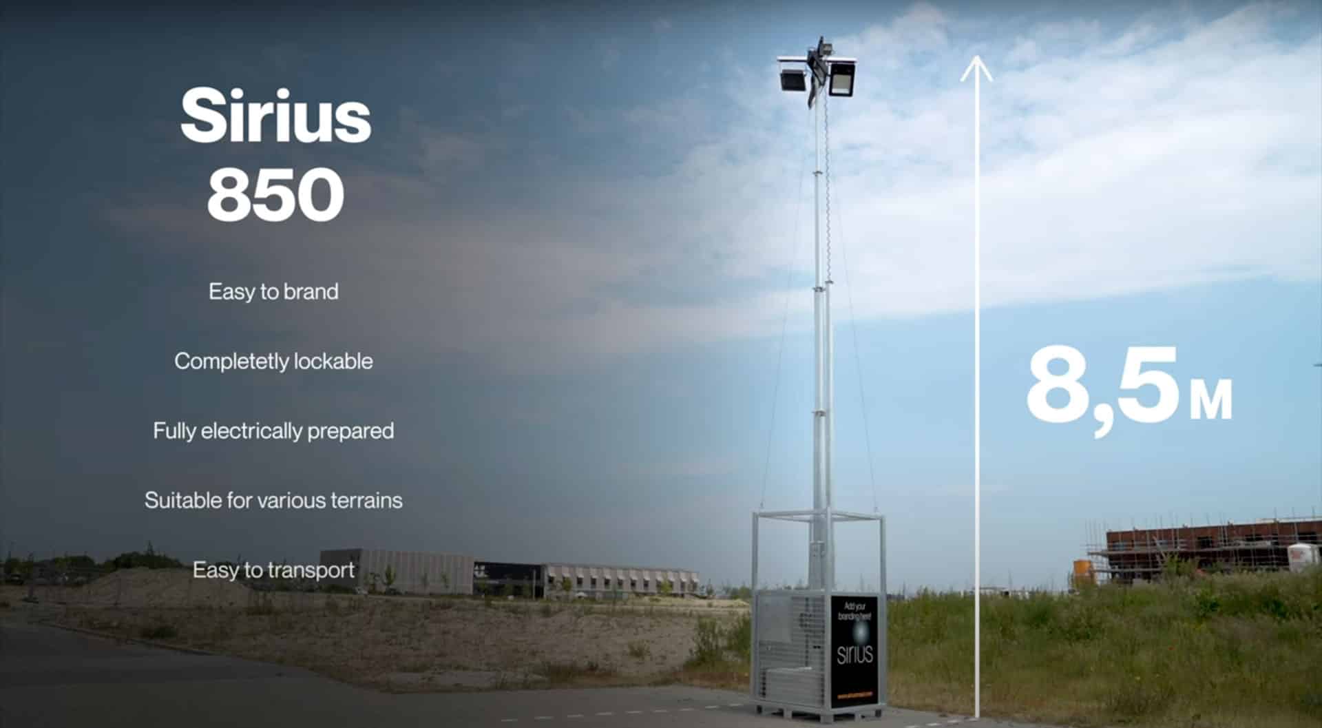 De Sirius PRO is speciaal ontwikkeld voor tijdelijke verlichting op locaties waar robuustheid, betrouwbaarheid en gebruiksgemak essentieel zijn. Deze volledig uitgeruste lichtmast is geschikt voor onder meer bouwplaatsen, evenementen, opslagterreinen en industriële zones. Dankzij de gesloten behuizing is hij bestand tegen intensief gebruik en ruwe omstandigheden, terwijl de 8,5 meter uitschuifbare mast zorgt voor een groot verlichtingsbereik.