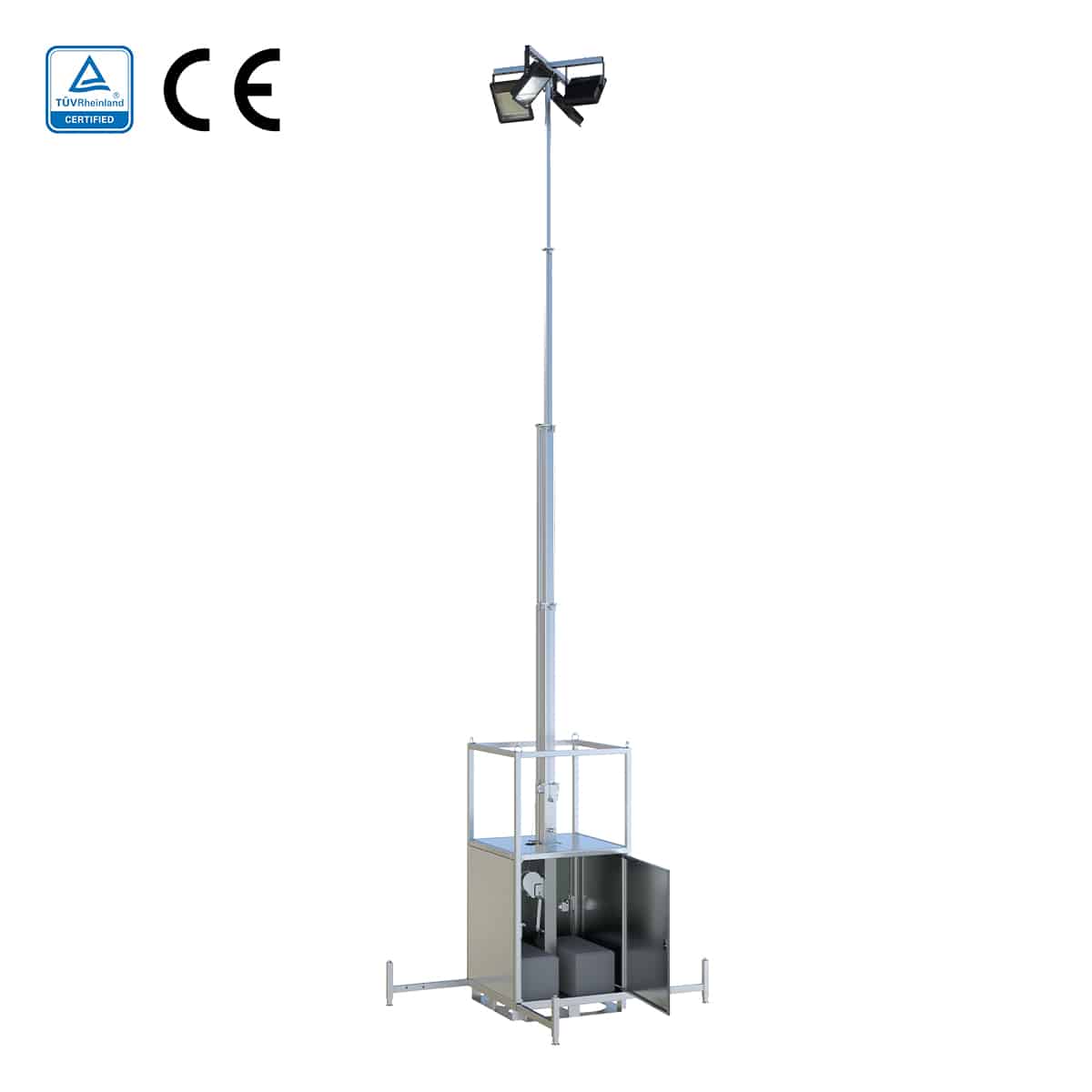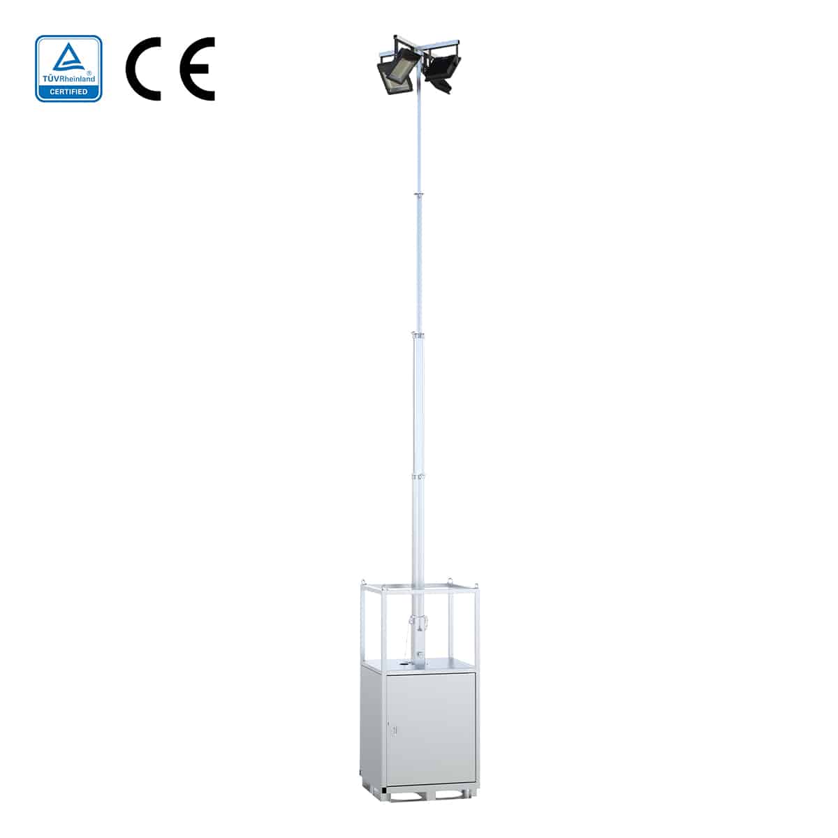 Deze lichtmast voldoet aan de strenge veiligheids- en kwaliteitsnormen van TÜV, een gerenommeerde Duitse certificeringsorganisatie.