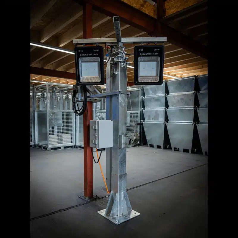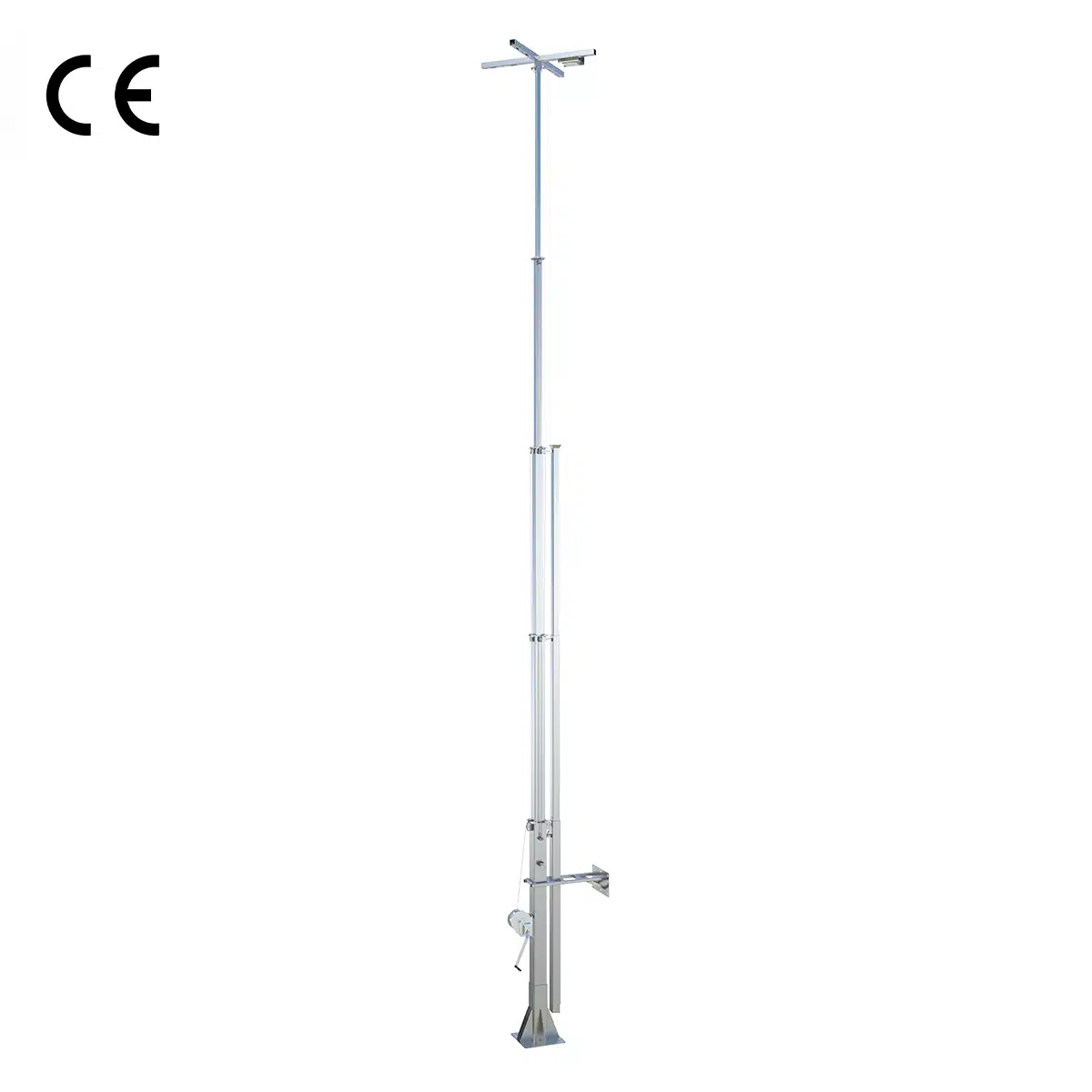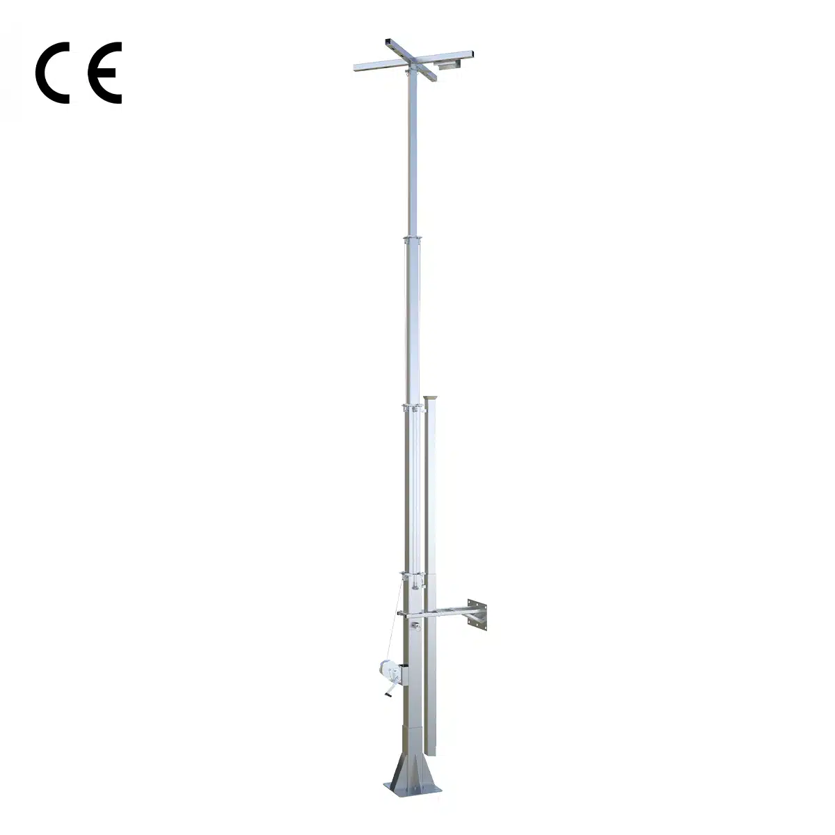 Met een handlier met een draagvermogen van 1800 lbs stel je de mast eenvoudig af op de gewenste hoogte — tot 6 of 8 meter, afhankelijk van het model. Dit maakt de mast geschikt voor uiteenlopende toepassingen zoals camerabewaking, verlichting of sensoren, waarbij hoogte en zicht cruciaal zijn.